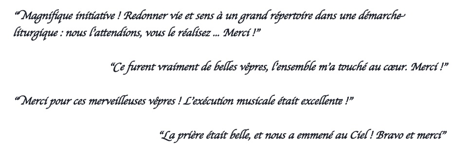Après une saison 2014-2015 riche de promesses, les chanteurs et instrumentistes de l’Ensemble espèrent pouvoir créer, de concert avec les paroisses, de nouveaux évènements. A suivre !
